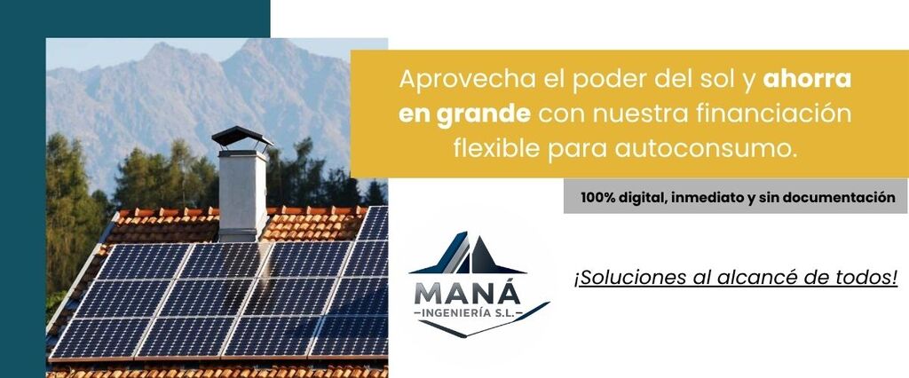 MANA INGENIERIA SL te brinda la oportunidad de ahorrar de manera instantánea en tus proyectos. Comienza a reducir costos en tu instalación fotovoltaica con financiamiento del 100%, sin pago inicial y con plazos extendidos. Contáctanos hoy por teléfono o por correo electrónico para obtener una estimación gratuita.